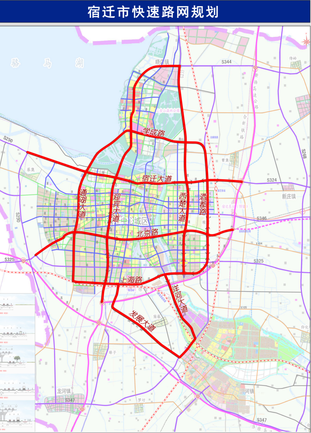 經(jīng)濟發(fā)展,交通先行。根據(jù)《宿遷市快速路網(wǎng)規(guī)劃(修編)(2018—2035)》,宿遷市“二環(huán)十射”快速路網(wǎng)總里程達166公里。其中,“內(nèi)環(huán)”由迎賓大道、北京路、西楚大道、宿遷大道(原宿支路)構(gòu)成,長24公里;“二環(huán)”由通湖大道、上海路、酒都路、學成路構(gòu)成,長55公里;“十射”為迎賓大道北延、新?lián)P高速連接線、西楚大道北延、富春江路、宿遷大道東延、宿遷大道西延、北京路東延、北京路西延、黃河南路、發(fā)展大道,總長87公里。
