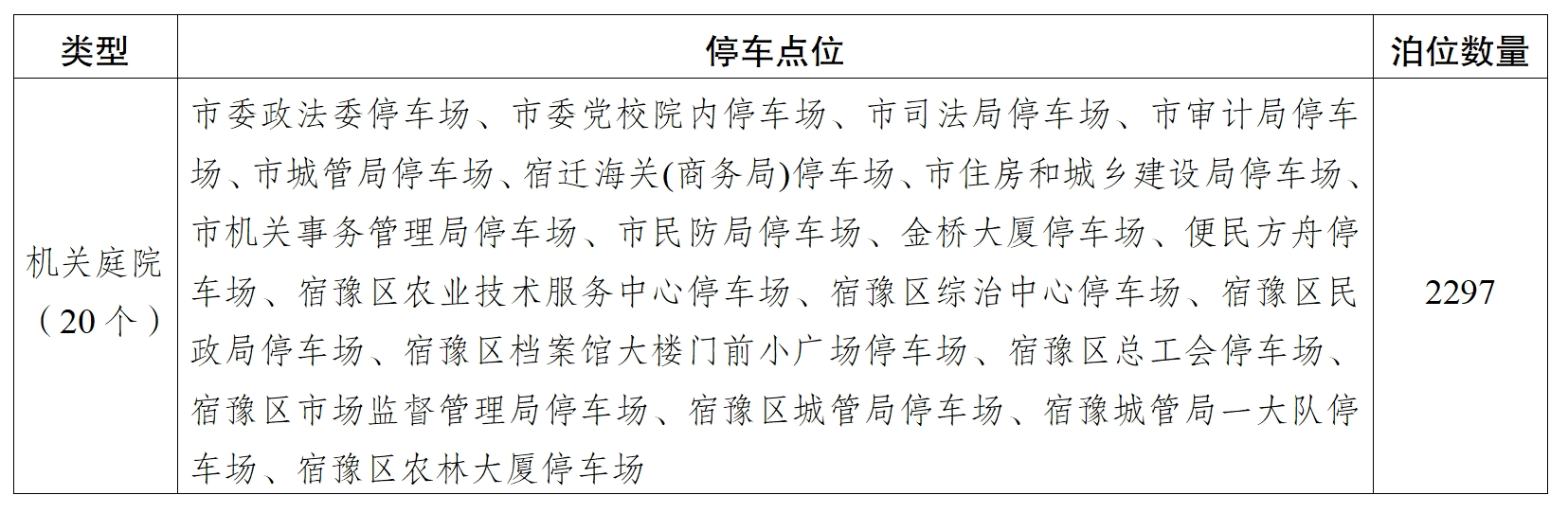 涉及20個機(jī)關(guān)庭院、2297個停車泊位