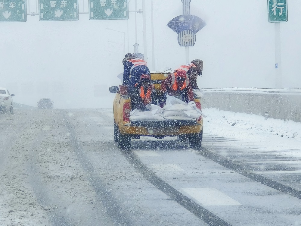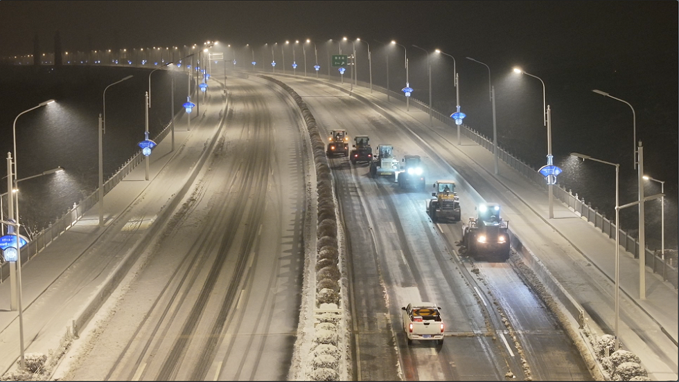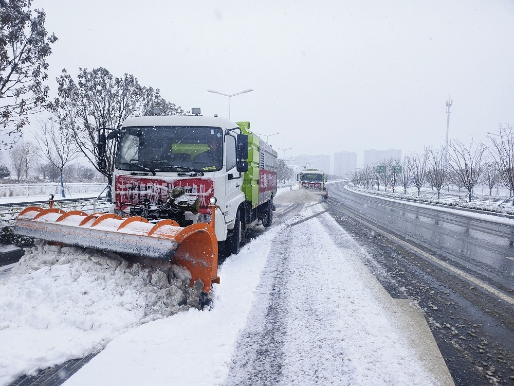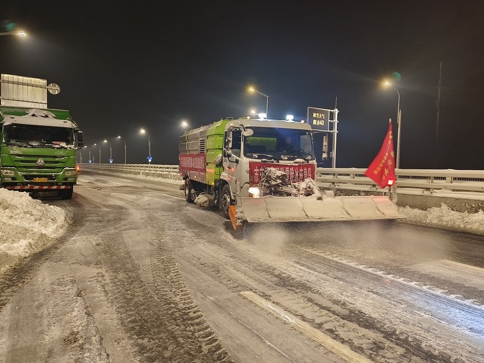 高鐵公司進(jìn)一步加大研判、加強巡查力度,4日夜間出動除雪應(yīng)急保障人員195名,巡查車、滾雪車、鏟雪車、融雪劑撒布機等機械設(shè)備約56臺,全面對上海路、北京路、迎賓大道二期和洋河大道開展撒融雪劑、除雪工作,累計撒融雪劑260余噸。目前所管養(yǎng)路段全部通暢。
