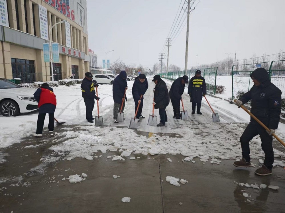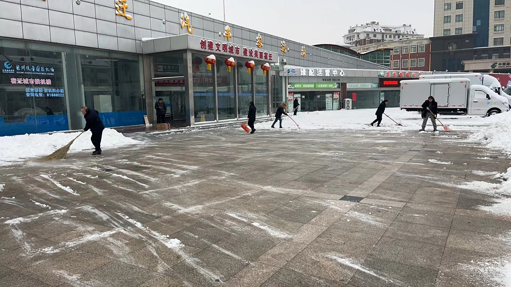 通湖物流園現(xiàn)場管理人員、物業(yè)管理處全員在崗作業(yè),對園區(qū)各主干道積雪進(jìn)行清理,保障園區(qū)內(nèi)道路通暢、工作正常運行,減少路面結(jié)冰對日常作業(yè)影響。