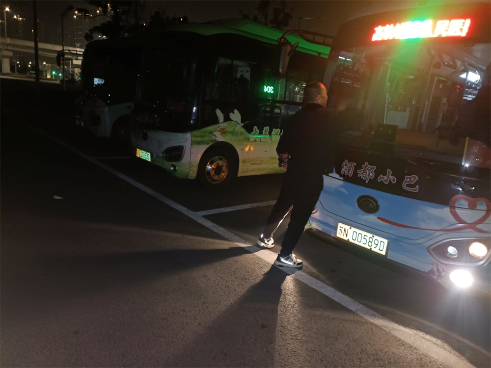在仔細(xì)確認(rèn)了車輛的安全性能后,又細(xì)心地擦干凈車窗上的水霧,早上6:00,葉敬濤穩(wěn)穩(wěn)將車停在高鐵宿遷站公交發(fā)車區(qū),等待著第一批乘客。