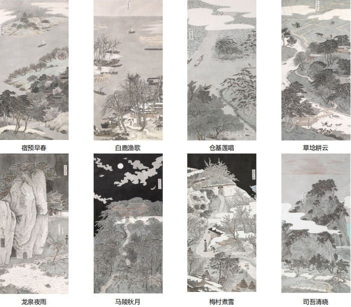 玖酒飄香浮雕的東西兩側(cè),分別設(shè)計(jì)了長(zhǎng)29米、高3.9米的文化長(zhǎng)廊,其上各鑲嵌了四幅宿遷歷史人文美景雕板,由國家一級(jí)美術(shù)師、宿遷市政協(xié)副主席、民盟市委主委丁立江先生牽頭,會(huì)同江蘇省作家協(xié)會(huì)理事、宿遷市作家協(xié)會(huì)主席韓玉喜,中國書法家協(xié)會(huì)會(huì)員、江蘇省書法家協(xié)會(huì)理事、宿遷市書法家協(xié)會(huì)主席張守躍,中國美術(shù)家協(xié)會(huì)會(huì)員郭鑫共同完成,每幅圖樣的創(chuàng)作都一一對(duì)應(yīng)前人留下的詩句。相傳“宿遷八景”出現(xiàn)于唐代,首載明萬歷《宿遷縣志》,以后續(xù)修,皆有記載。“宿遷八景”即為:“宿預(yù)早春、白鹿?jié)O歌、倉基蓮唱、草埝耕云、龍泉夜雨、馬陵秋月、梅村煮雪、司吾清曉”共八處風(fēng)光。“八景”各具特色,景象殊奇,歷代以來,項(xiàng)屬之地文人雅士相聚于“八景”之地,曲水流觴,迎風(fēng)弄月,留下了眾多文化典故。