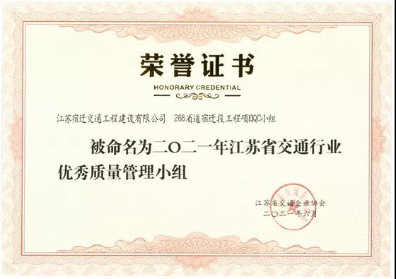 【宿遷交建】宿遷交建三項(xiàng)目榮獲“江蘇省交通行業(yè)優(yōu)秀質(zhì)量管理小組”稱號(hào)