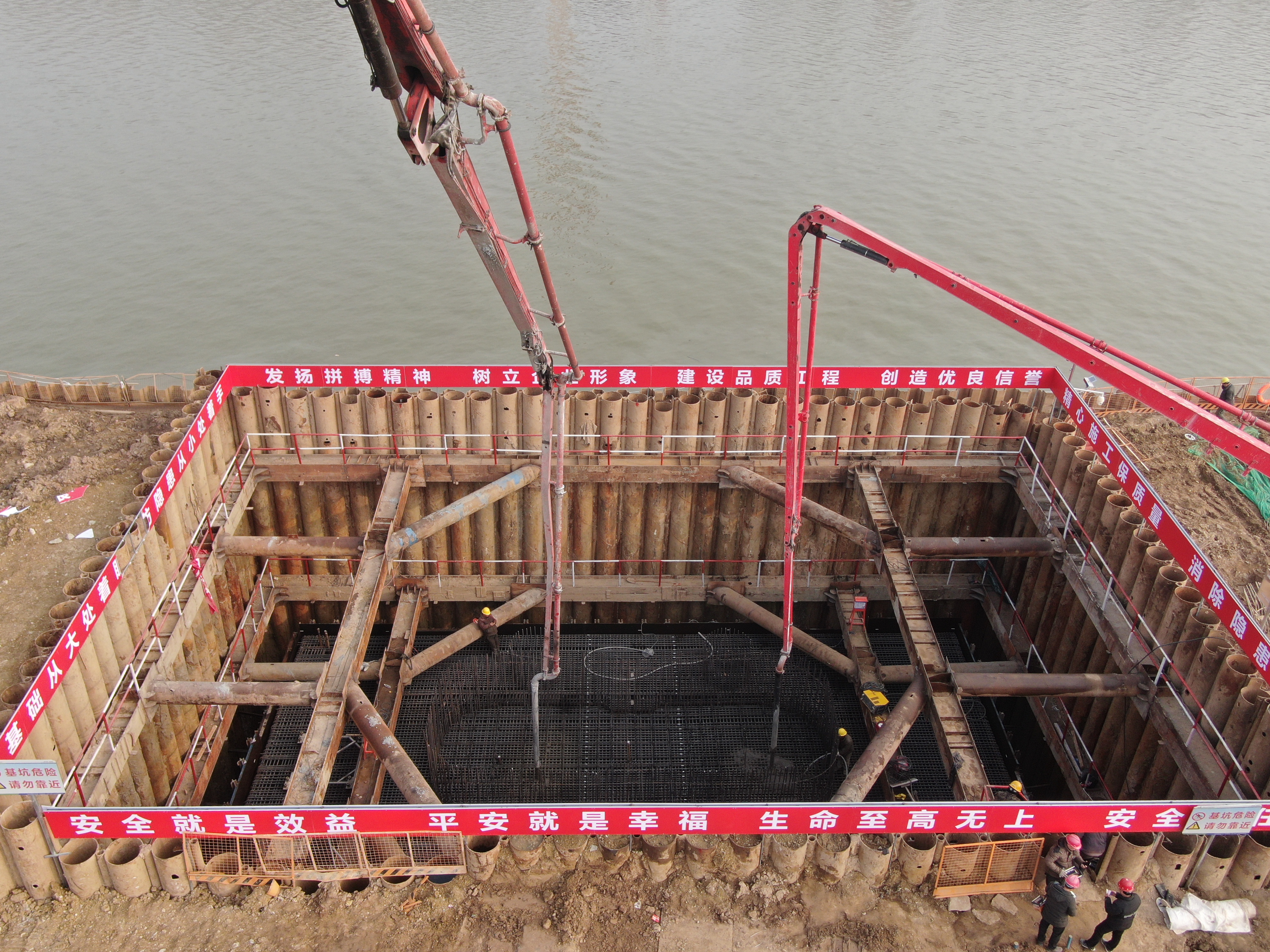 【宿遷交建】268省道宿遷段工程(洋河新區(qū)段)京杭運河特大橋16#主墩承臺完成澆筑