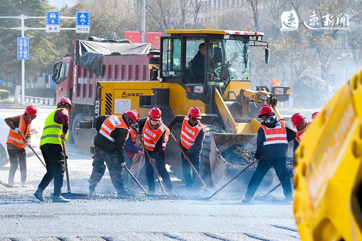 2月19日,宿遷市迎賓大道二期快速化改造工程建設(shè)現(xiàn)場一片火熱,數(shù)十臺車輛及機械設(shè)備正在進(jìn)行瀝青下面層攤鋪,建設(shè)者開足馬力,加快推進(jìn)工程進(jìn)度,力爭早日建成通車。