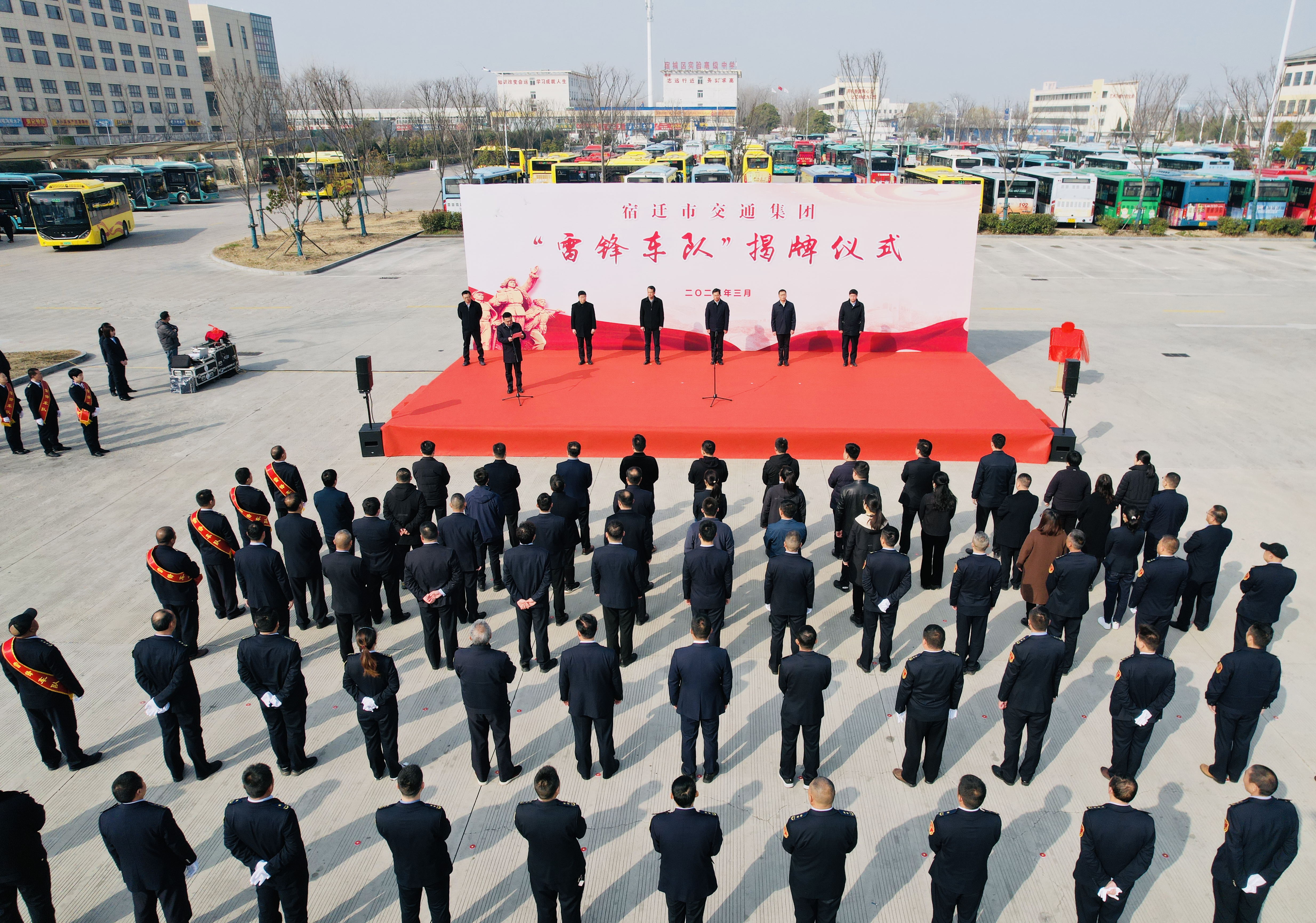 3月4日上午,宿遷交通集團(tuán)舉行“雷鋒車隊(duì)”揭牌儀式,標(biāo)志著宿遷公交K202路“雷鋒車隊(duì)”正式上線。市委宣傳部副部長、市文明辦主任陳夫生,宿遷交通集團(tuán)黨委書記、副董事長邵巖出席儀式并共同揭牌。
