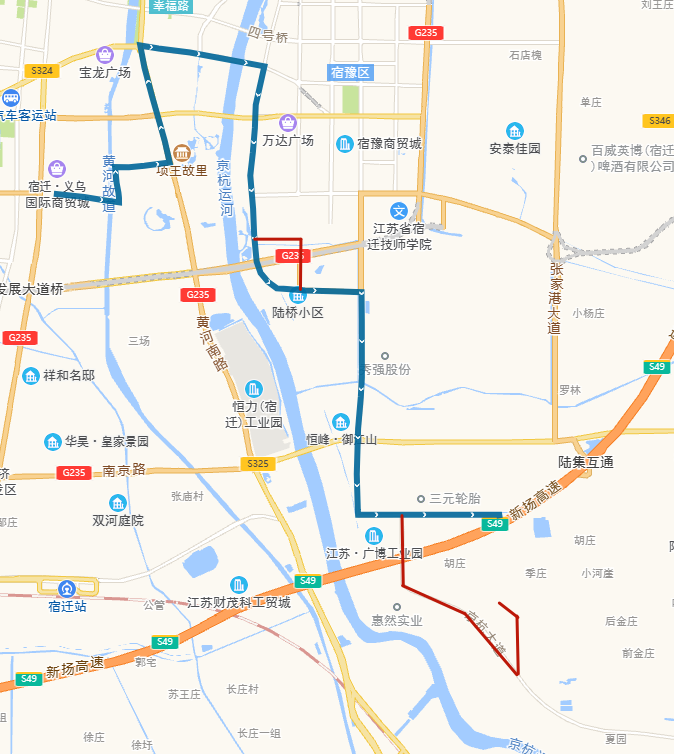 (五)802路。將現(xiàn)通湖大道—姑蘇路—通達(dá)大道—蘇州路—人民大道—廈門路—發(fā)展大道—項王路—項王東路—珠江路—珠江路公交首末站路段,優(yōu)化為通湖大道—金雞湖路—通達(dá)大道—玄武湖西路—振興大道—吉林路—渤海路—青海湖西路—迎賓大道—洪澤湖路—發(fā)展大道—宿支路—市第一人民醫(yī)院公交首末站。